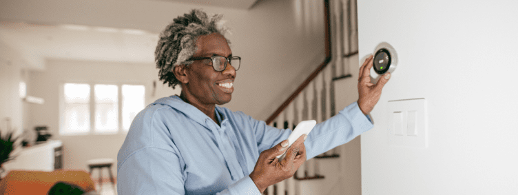 Smart thermostats let you adjust your home’s temperature using your smartphone or tablet, providing convenience and comfort without the need to get up.4 For those with mobility challenges, this can be a huge game-changer. Scheduling your thermostat can also help reduce energy usage and lower your utility bills while lightening your mental load—letting the technology do the thinking for you.4 - Adaptive Kitchen Tools